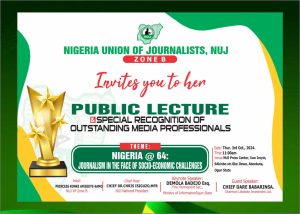 The Nigeria Union of Journalists (NUJ) Zone B is set to organize a public lecture to commemorate Nigeria’s 64th independence anniversary.